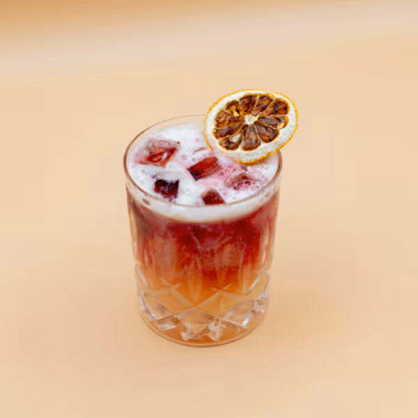 Bourbon, fresh lemon shrub, malbec float, rhubarb bitters